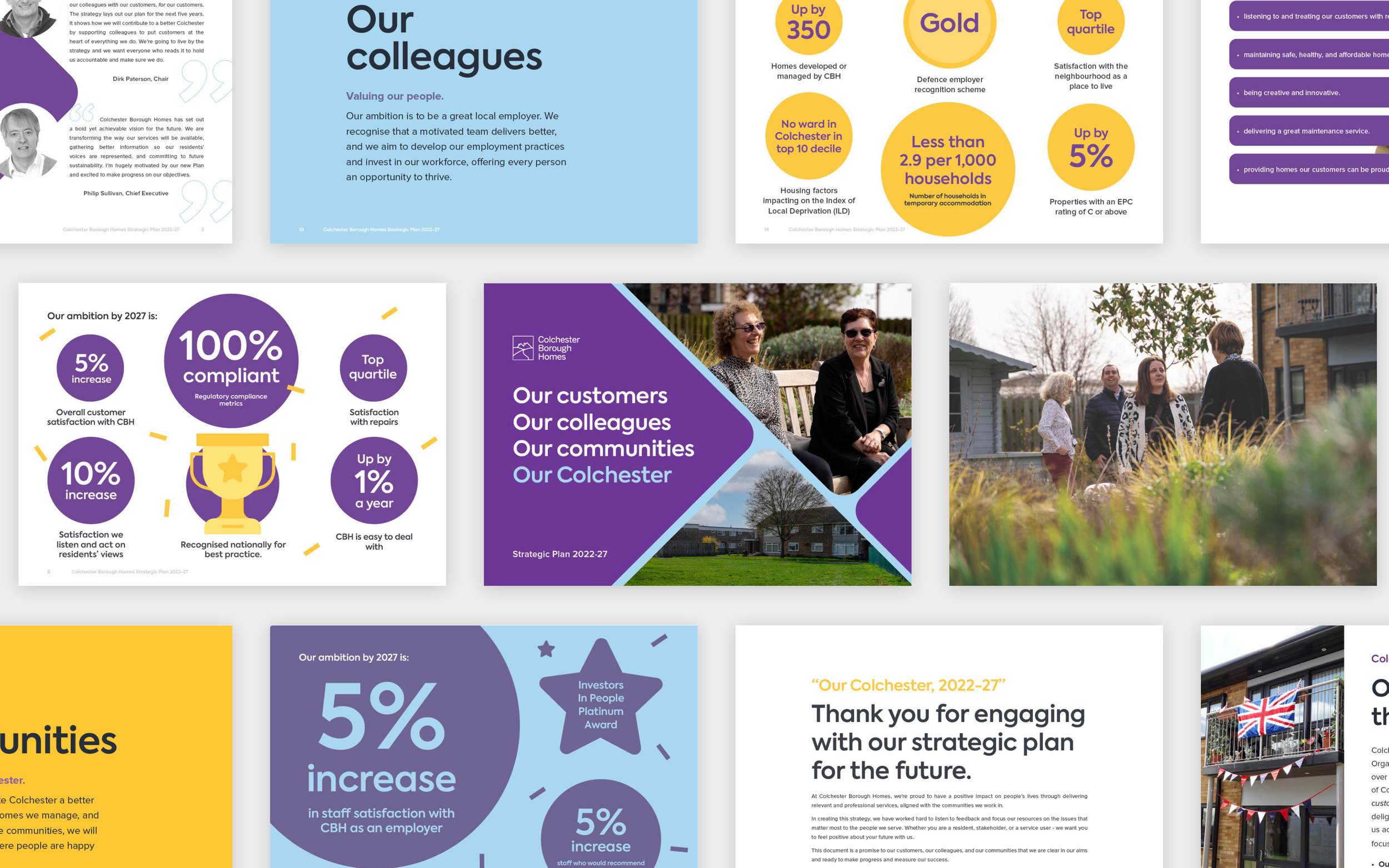 Colchester Borough Homes (CBH) is a not-for-profit organisation managing social housing and community services across Colchester. With a diverse stakeholder base and strong community impact, CBH required a future-facing strategic plan to guide their next five years, ensuring clarity, alignment, and accountability across the organisation and its wider audiences.