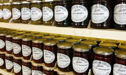 Transition: Jam jar is placed into the hands of a shop assistant.